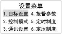 在主界面長按“SET”鍵約 2 秒或長按遙控器“MENU”鍵, 進入設(shè)置菜單界面??扇斯みx擇不同的氣井工藝來對應(yīng)不同的主菜單顯示內(nèi)容。主菜單顯示界面分別如下: