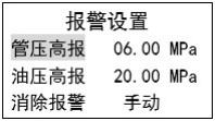 此菜單設(shè)置的是下游管線高壓報警保護閾值、上游管線高低壓報警保護閾值及消除報警方式。