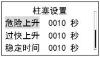 過快上升: 柱塞棒過快上升時間, 默認 10 秒